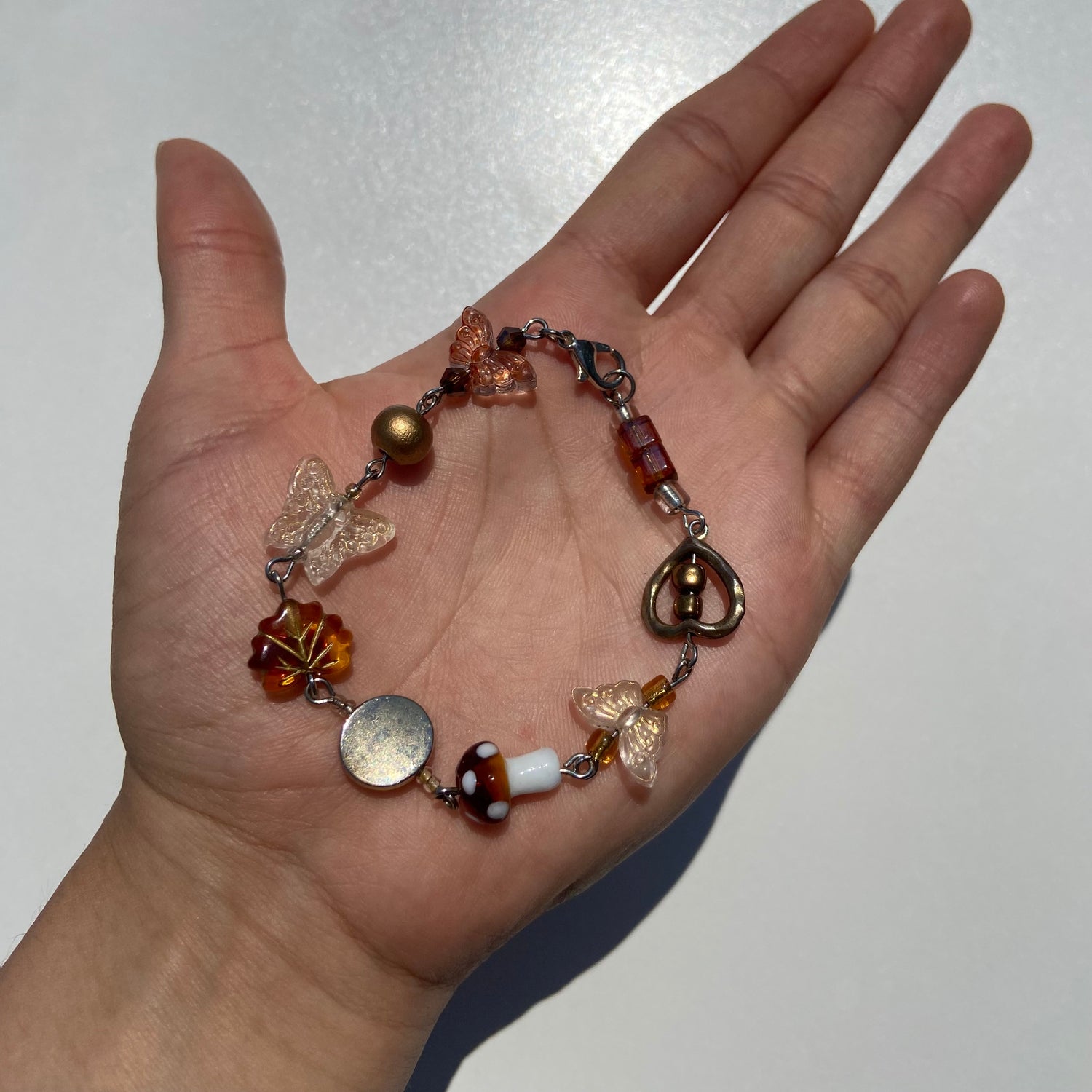 Embrace the cozy charm of autumn with this exquisite fall Essential. Crafted and designed by hand, this amber toned charm bracelet is sure to stun!